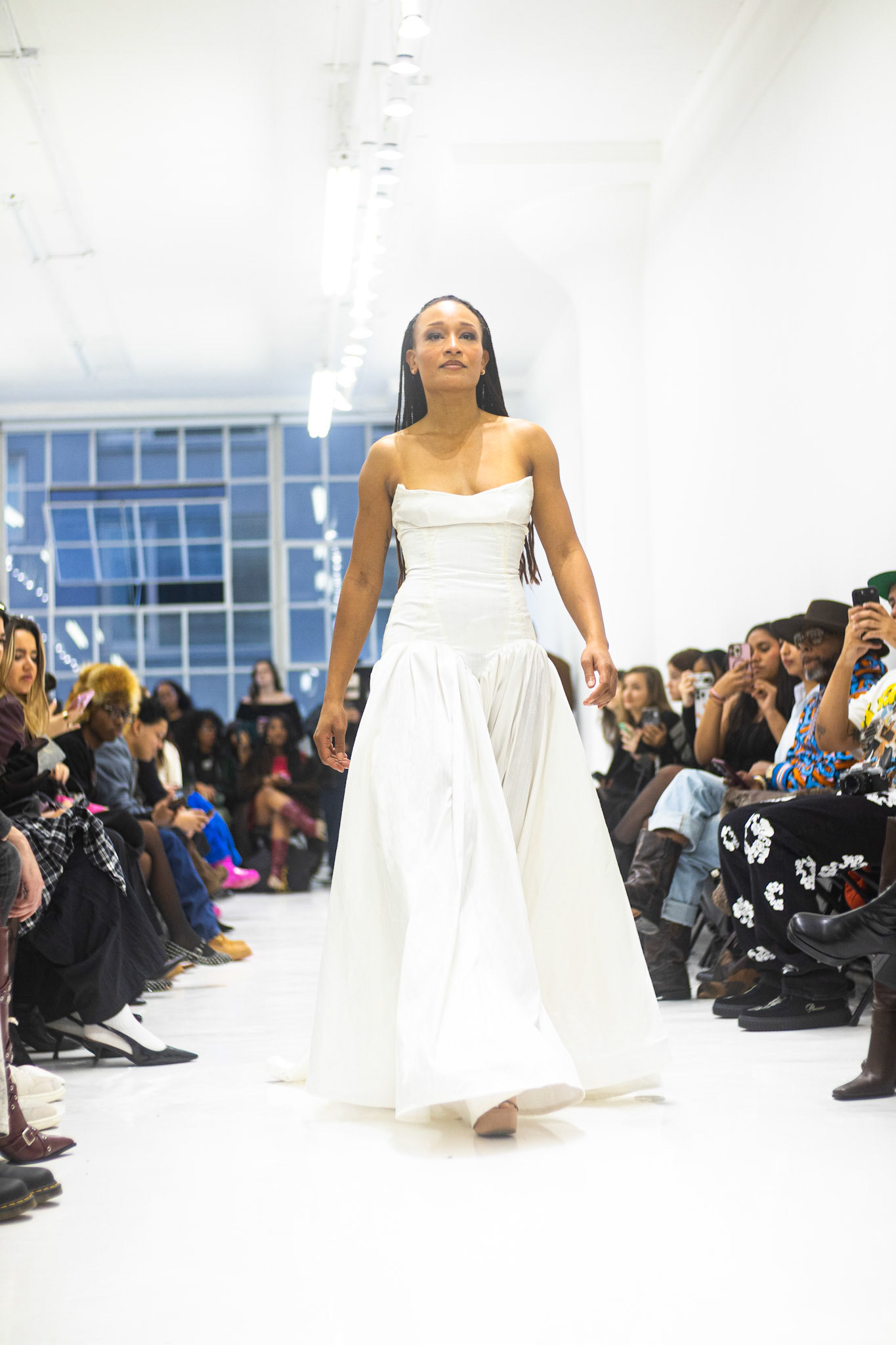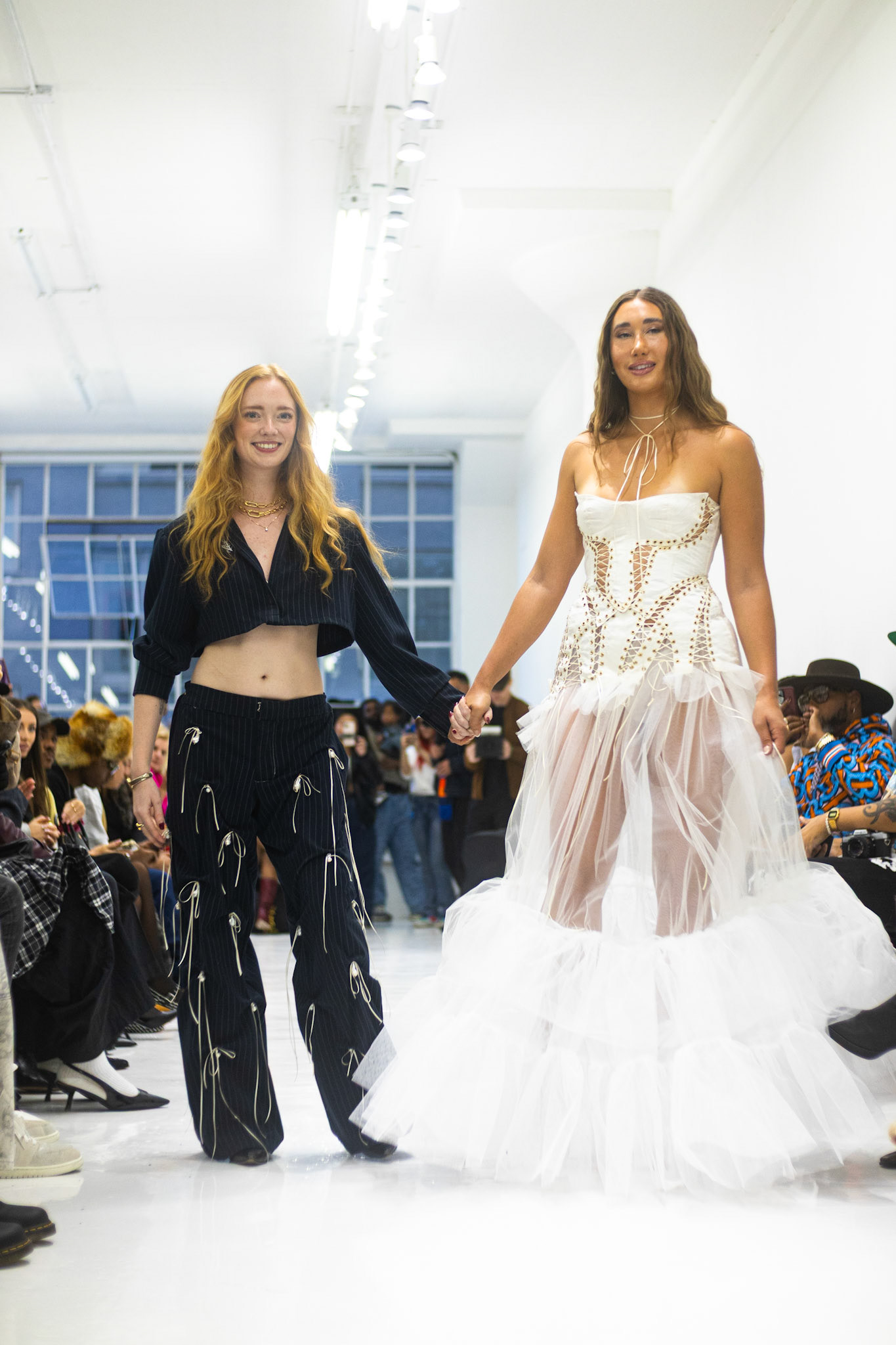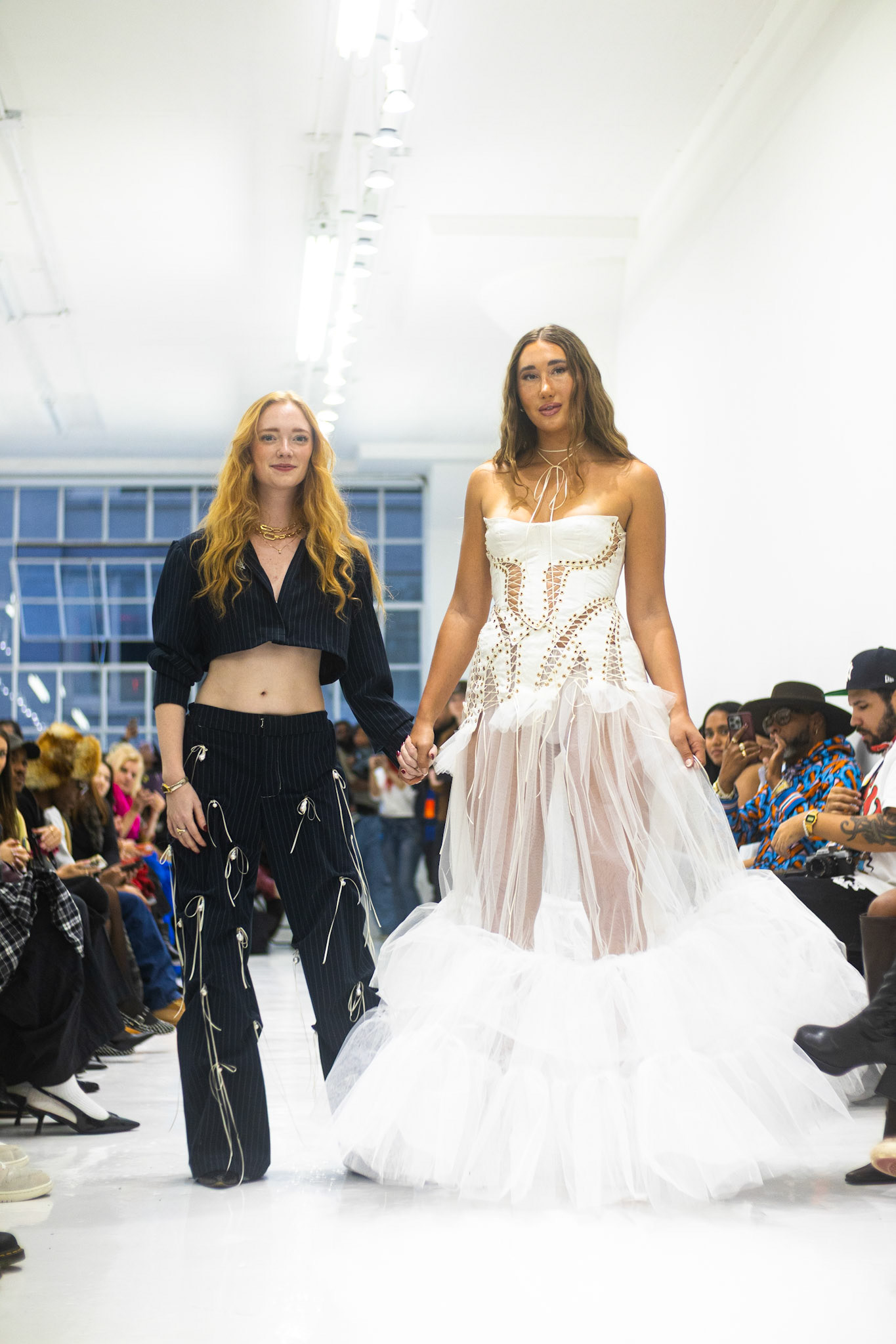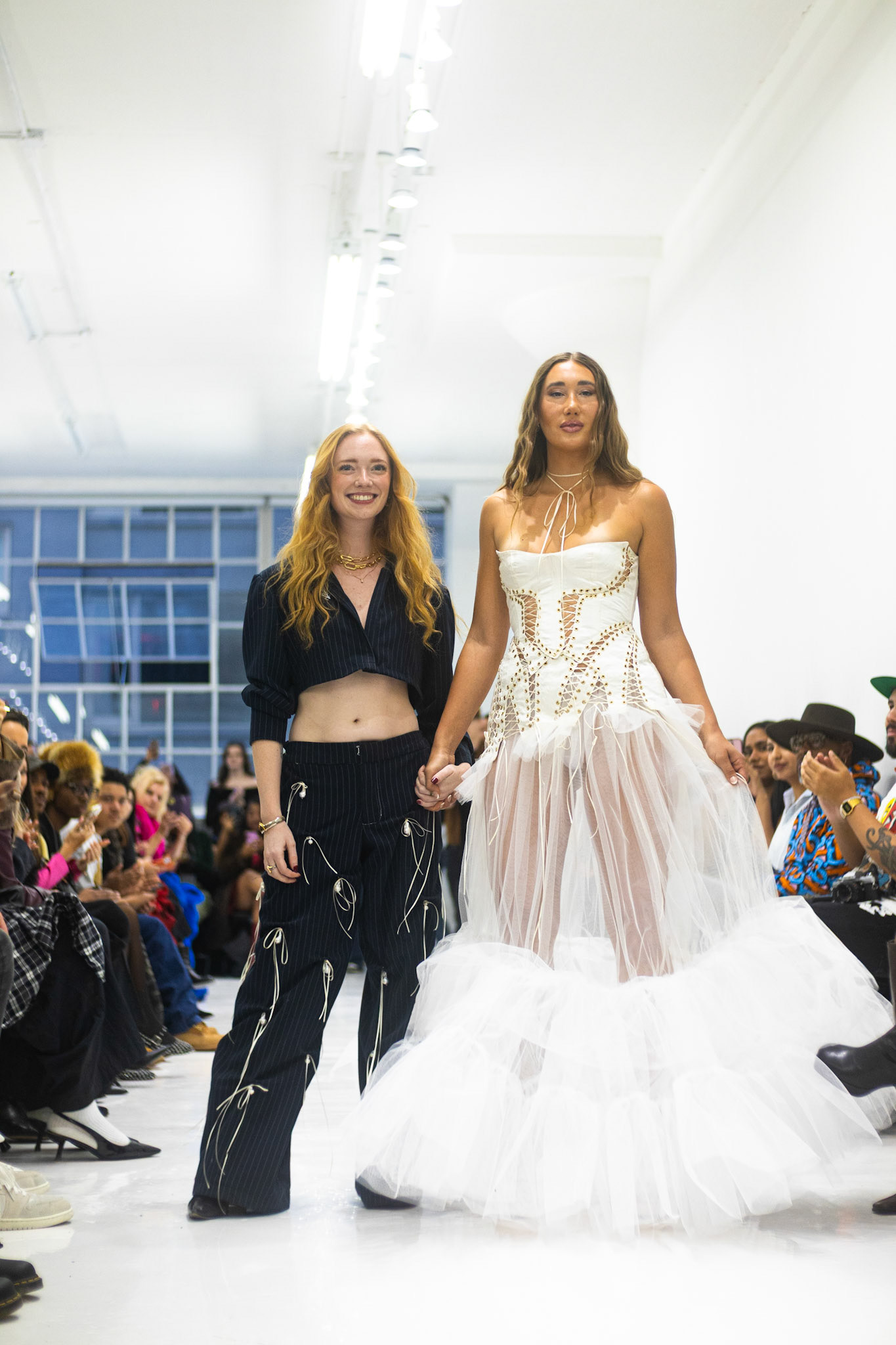 Designers Ella Titus of Vellachor, Jolea Jacob of JS Designs, and Zento Pierre at the Revive Fashion show during New York Fashion Week 2025