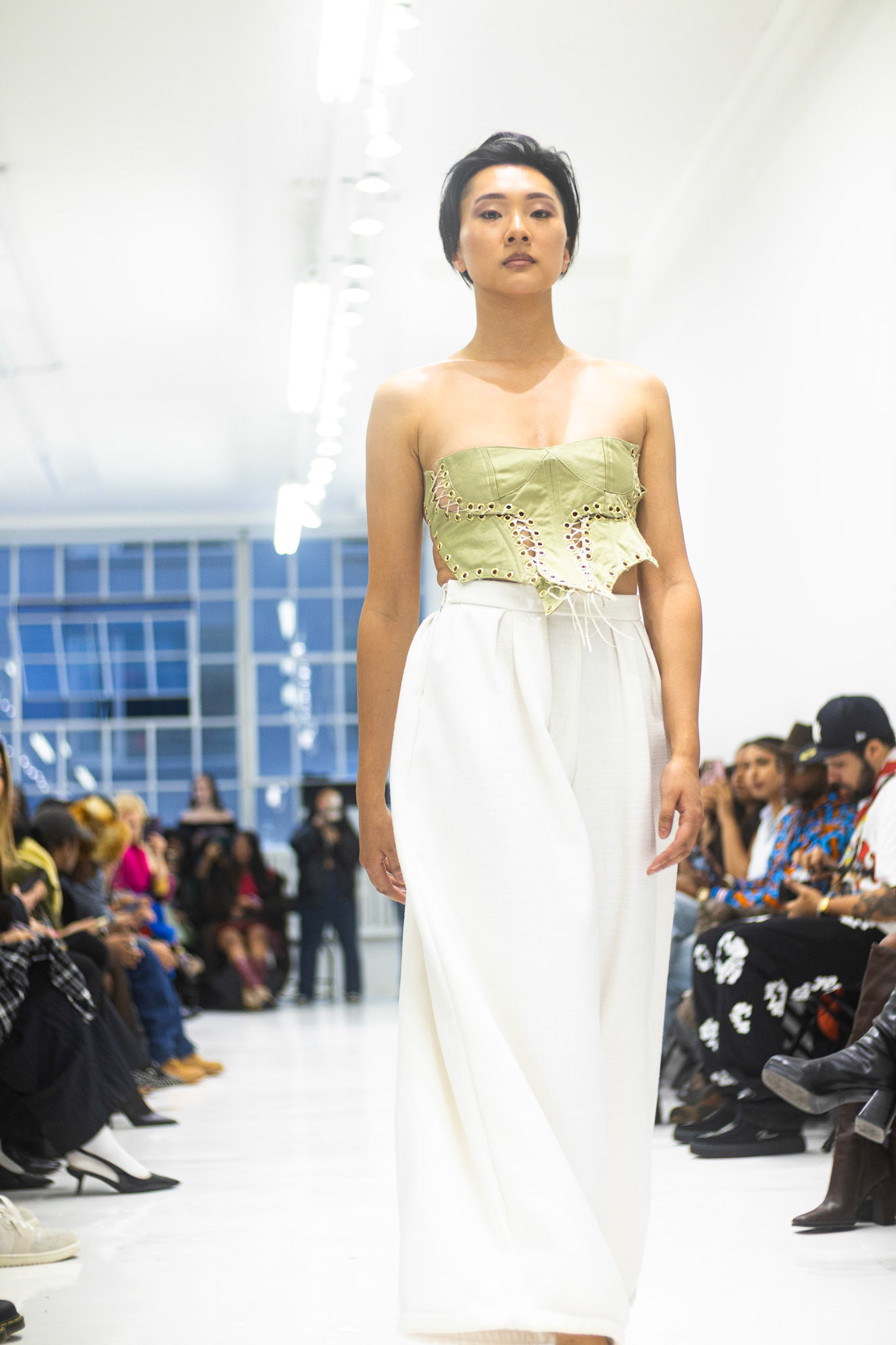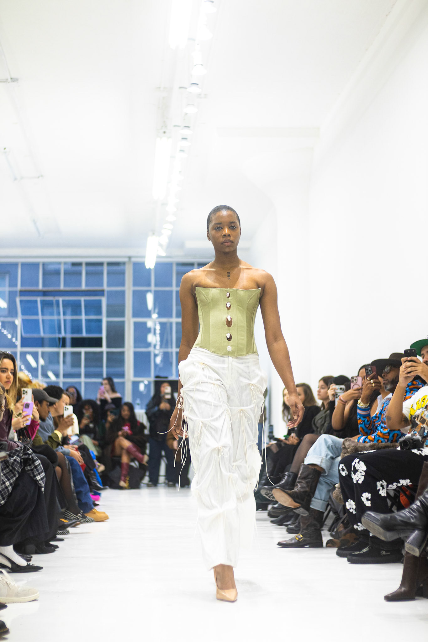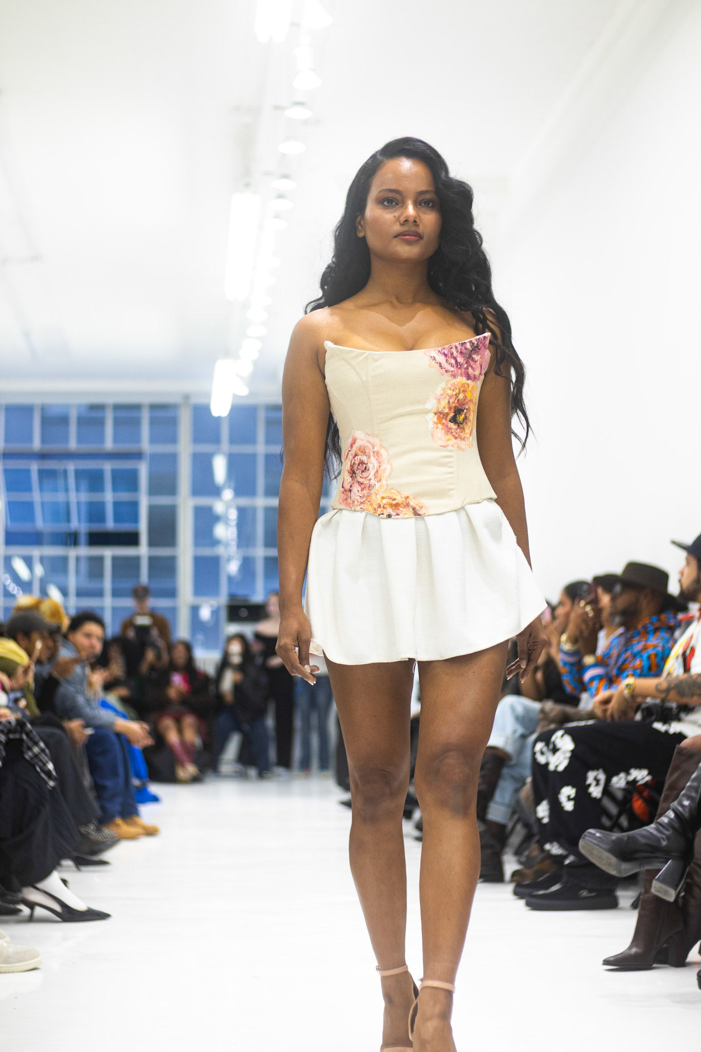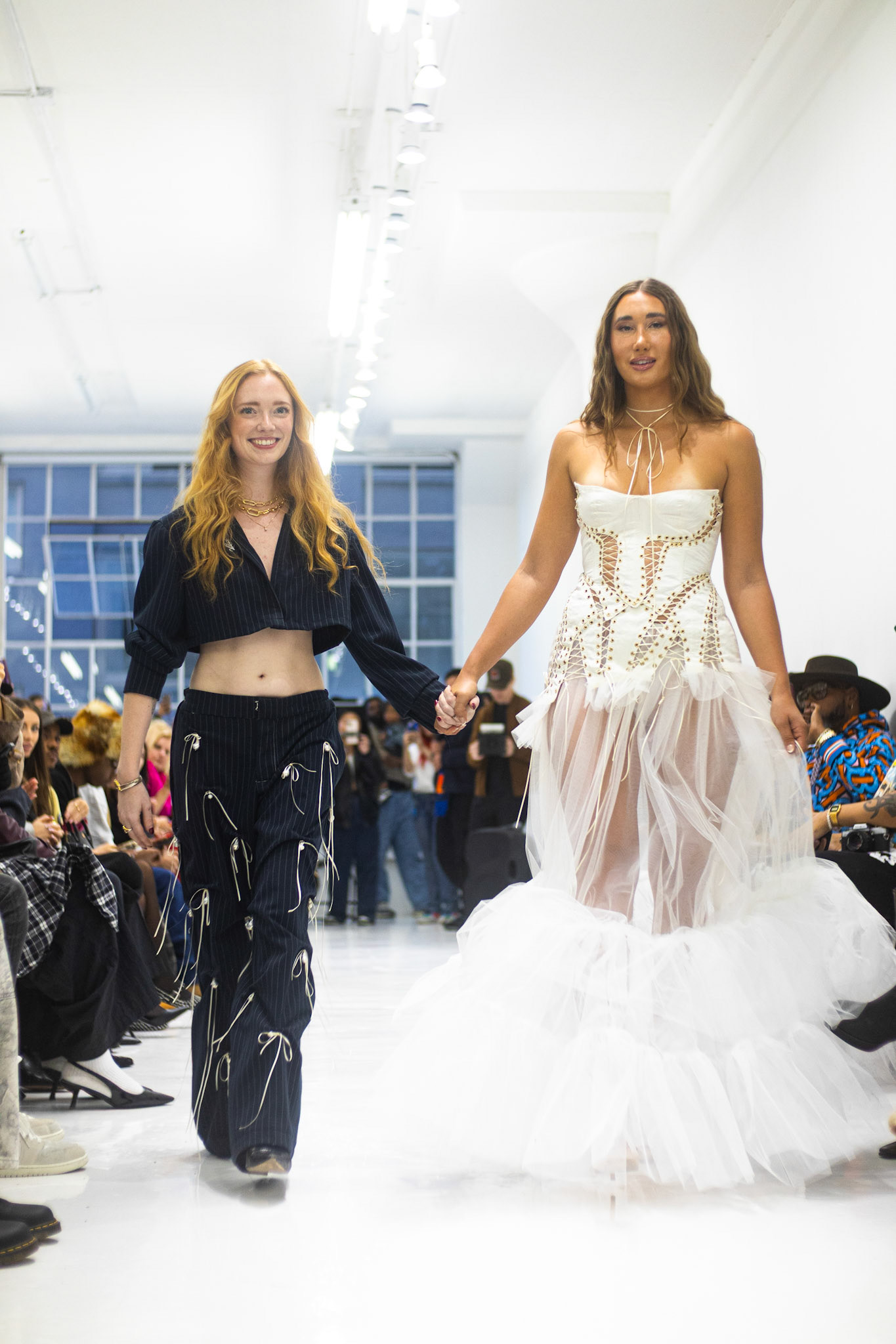 Designers Ella Titus of Vellachor, Jolea Jacob of JS Designs, and Zento Pierre at the Revive Fashion show during New York Fashion Week 2025